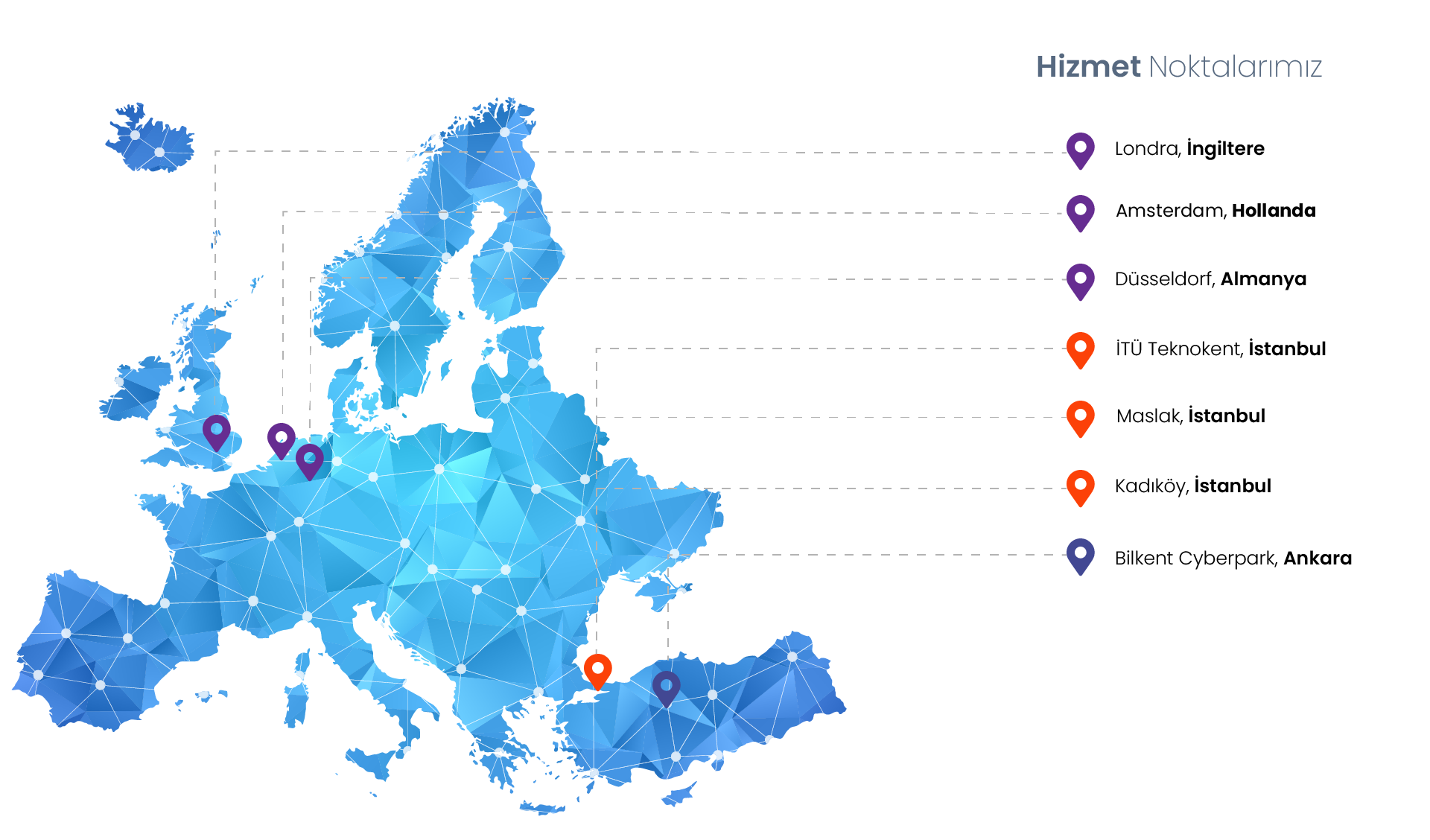 BilgeAdam Teknoloji; yurt içinde ikisi İTÜ ARI Teknokent ve Bilkent CYBERPARK’ta olmak üzere İstanbul ve Ankara’daki ofislerinde hizmet vermektedir. Global operasyonlarını ise Londra – İngiltere, Amsterdam – Hollanda ve Düsseldorf – Almanya’daki ofislerinde yürütmektedir.